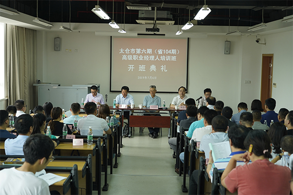 7月6日,太仓市工信局与我校健雄联合研究院联合举办的太仓市第6期(江苏省第104期)高级职业经理人资质培训班开班典礼在学院二期举行。江苏省政府原副省长吴瑞林,省职业经理人协会会长施友成,太仓市工信局局长、党委书记吴忠良,党委副书记王新,我校副校长周晓刚出席典礼。 开班典礼由王新主持,周晓刚作开班动员讲话,他要求学员们珍惜机会,加强学习,学以致用,他还宣布了上课纪律,希望大家严格遵守。吴忠良介绍了上期部分优秀学员的优异成绩,希望学员们学有所获,把握机会,在交流中加强了解,互相学习。开班仪式后,吴瑞林作了《新时代 新热点 新起点》的宏观经济形势与企业家职责使命的专题讲座,他扎实的理论功底、丰富的实战经验受到学员的一致好评。 培训班共有42名企业高管参加,聘请河海大学、苏州大学等知名高校的教授、专业培训师、知名企业家等组成的特色讲师团,采取理论学习与现场实践方式相结合的方法,从5G时代战略人力资源管理、企业法律风险防范、大数据驱动下的企业管理变革、物联网与企业发展、企业资本运作、税务筹划、技术创新技巧与方法、学习型企业创建等19个专题为学员们授课。(图 /何寿林 文/沈炫吟 审核/朱慧)