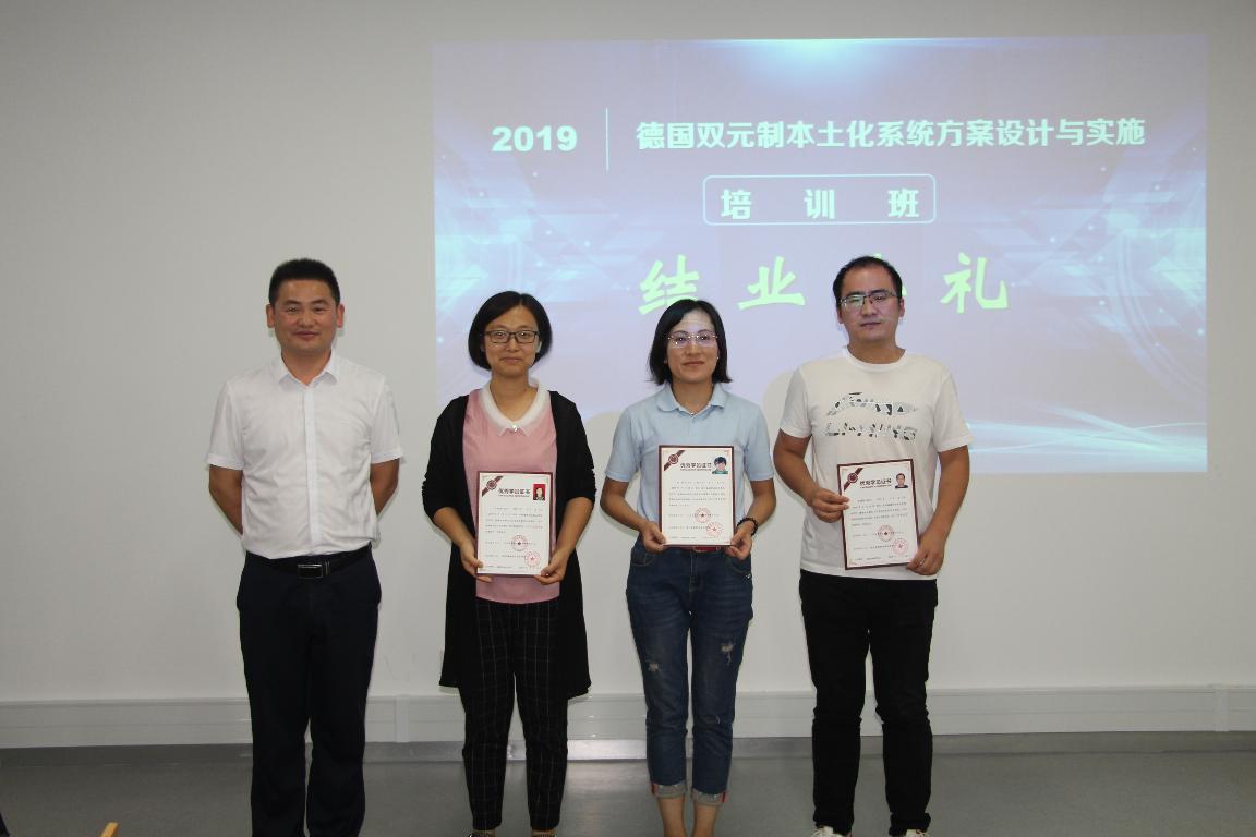 7月12日,江苏省高等职业院校师资培训项目——德国双元制本土化系统方案设计与实施班结业。学员全部通过考核,获得结业证书和由AHK中德双元制职业教育示范推广基地授予的培训资格证书。 培训班有来自省内高职院校共50名骨干教师学员参加,聘请了学院和企业专家与学员进行了深入学习指导、交流和研讨。学员学习观摩了德企的管理文化和标准意识,考察了中德双元制培训中心、舍弗勒培训中心、克朗斯培训中心和德资企业专业工人培训中心(DAWT),强化了双元育人理念,切身地感受到双元制的魅力和成果。 学员们在总结会上表示,通过为期5天的学习、研讨“德国双元制本土化”职业教育系统方案设计和实践经验,有效提升了自身专业建设、教学管理以及课程开发等教学关键能力,并进一步掌握了德国双元制教育管理和运行的实质及精髓,在今后的教学实践中,将在理论和操作层面切实提高德国双元制本土化课程开发和教学设计方面的能力。(图/耿可均 文/李之繁 审核/刘红月)