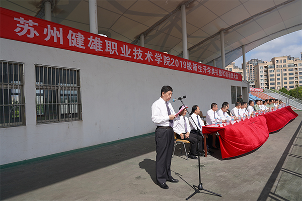 9月19日上午,2019级新生开学典礼暨军训动员大会在田径操场隆重举行,校领导盛建军、张学军、周晓刚、史菊林、马桂明,太仓市人武部相关领导,各二级学院和校相关部门负责人,近2800多名新生参加活动。纪委书记盛建军主持大会。 在今年的新生中,根据国家计划有500多名社招新生,他们的到来,丰富了我校生源结构。值得一提的是,在太仓对口扶贫县贵州玉屏县和陕西周至县落实了相应的招生计划数,录取了49名玉屏县、周至县新生。校党委十分重视,召开迎新座谈会,启动党员“一对一”结对帮扶项目和大学生“双创”计划。 根据计划,从今天起,新生将进行为期两周的军训。盛建军宣布2019级学生军训团机构。在为期两周的军训中,全体新生将被整编成六个营,进行军姿、齐步、跑步、正步走等较为完整的军事标准化训练。 新生代表牛月恒发言,表示要珍惜三年大学时光,以优异的成绩完成学业,做一名新时代合格的大学生。(图/文 何寿林)