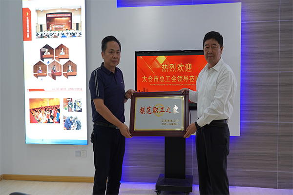 10月12日下午,太仓市总工会副主席黄海松来到我校,为我校获得江苏省“模范职工之家”称号授牌。纪委书记盛建军、工会主席马桂明,校及各二级学院工会负责人出席授牌活动。