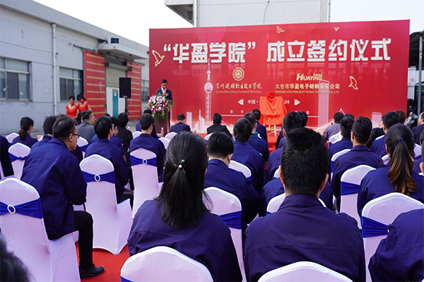 校企双方本着资源共享、优势互补、平等自愿、互惠互利的原则,实现合作共赢,共同发展。根据协议,在我校设立“华盈电子班”“华盈自动化班”“华盈物流班”等,每年招生人数不低于150人,为华盈电子定向培养人才,并适时共同商讨调整定向培养专业或方向、规模和合作方式。华盈电子向我校提供必要的实验设备供教学使用。我校采用产学合作、工学交替、顶岗实习的现代人才培养模式为企业培养人才,为保证合作培养的人才质量,我校将与华盈电子共同开发相关课程及相关岗位职业标准,华盈电子为合作专业的学生下企业实践创造条件,以使合作培养的学生尽快适应企业的需求。