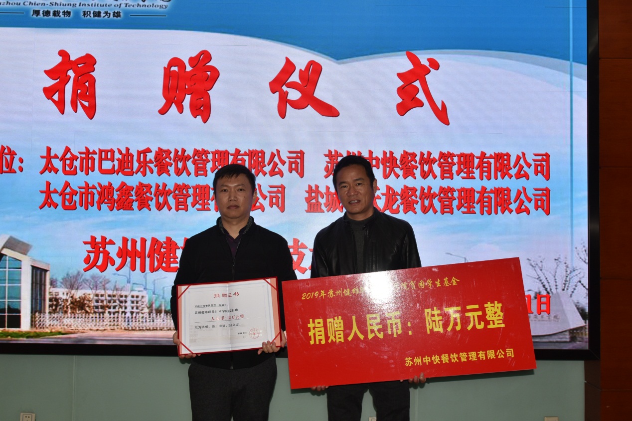 这批捐款企业除苏州巴迪乐餐饮管理有限公司外,还有盐城市跃龙餐饮管理有限公司、太仓市鸿鑫餐饮管理有限公司和苏州中快餐饮管理有限公司等4家单位。这些企业都是直接为学生提供餐饮服务的,他们在不断改善服务质量的情况下,以实际行动关心学生学业。史菊林向捐赠企业表示感谢,希望他们一如既往,比质量、比服务、比贡献,切实提高服务质量。(图/文 何寿林)