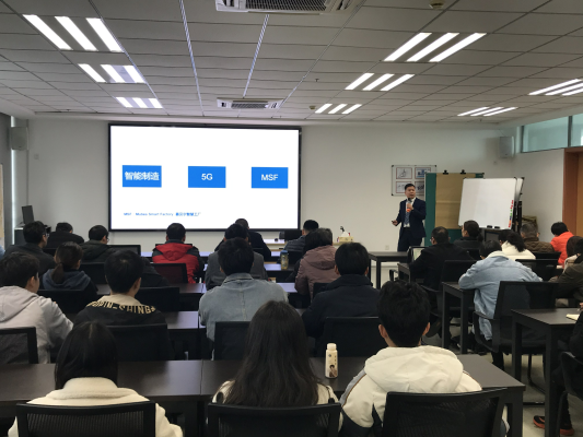 李习智工程师凭借着丰富阅历,给现场师生介绍了制造业发展历程、当前热点的5G技术应用领域以及智能制造发展趋势。李工以慕贝尔智慧工厂(Mubea Smart Factory,MSF)为例,讲述了MSF在使用过程中员工操作简便、管理运营高效等优点,突出了智能制造本质是主体对外部环境变化的响应能力。
