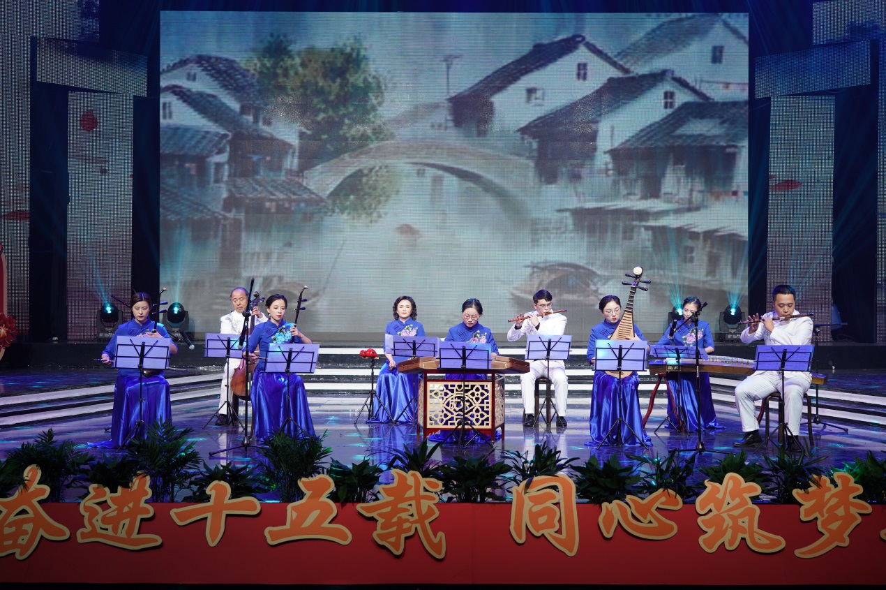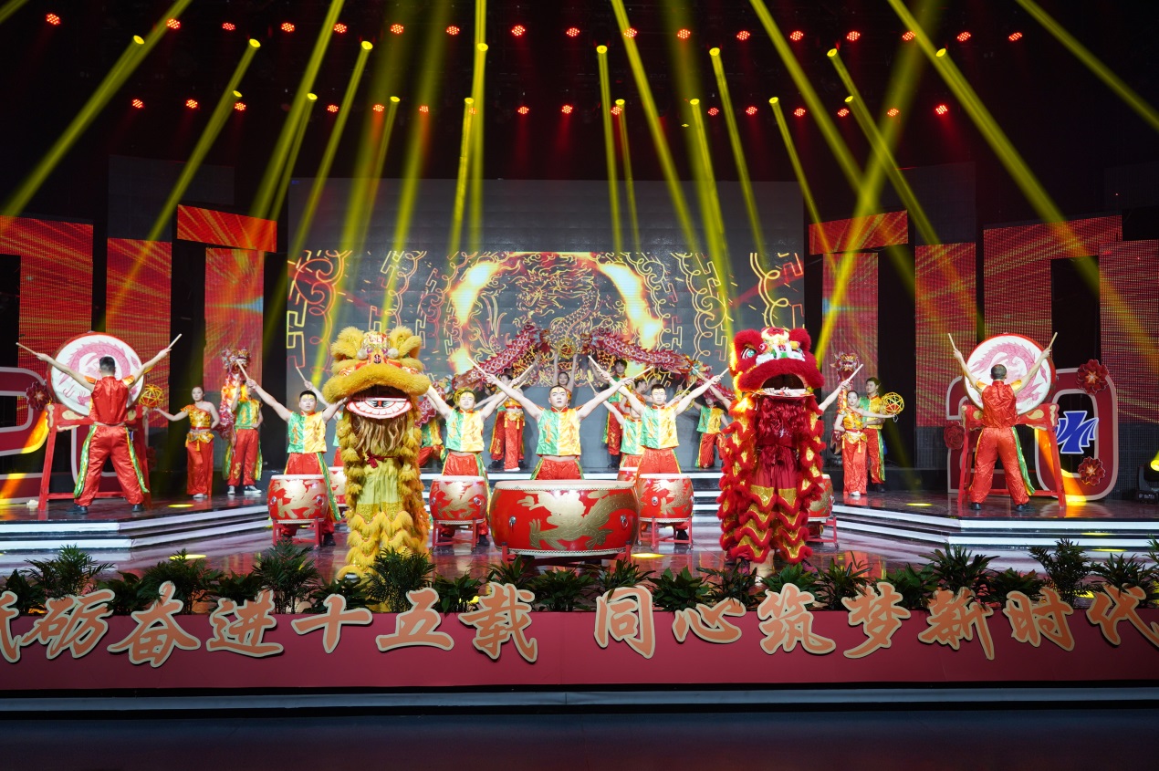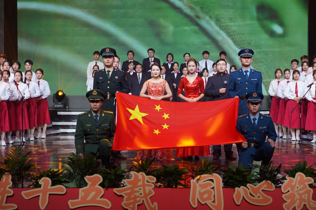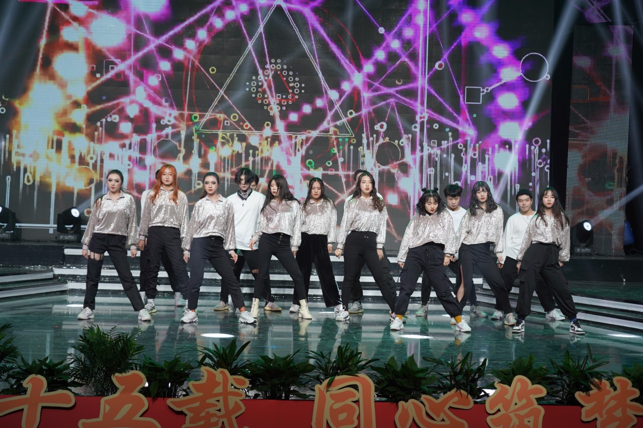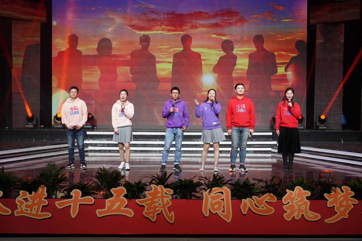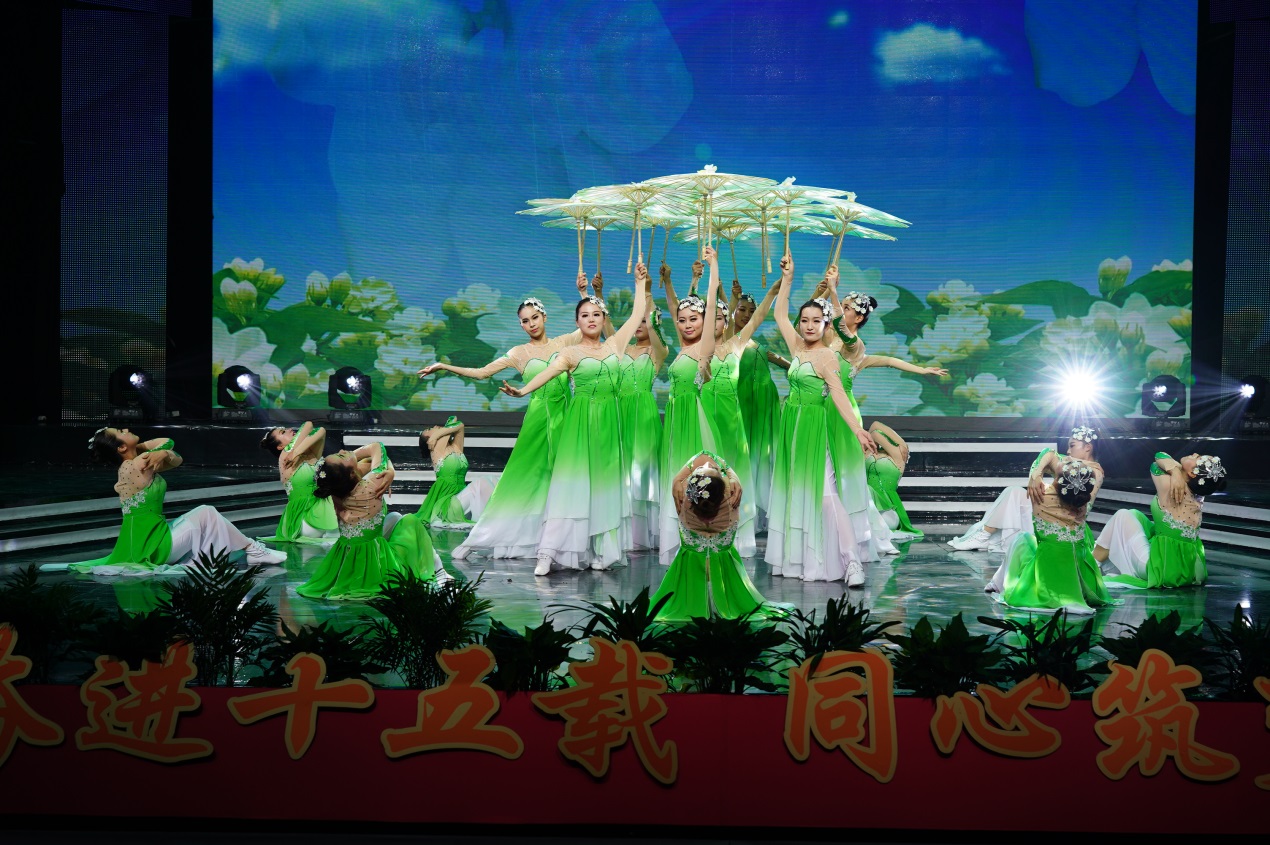 近2个小时的演出由缘聚健雄、情系娄东和梦圆时代三个篇章组成,共12个节目。演出的歌舞、相声、小品、合唱等都是教职工们自编、自导、自演的,反映了他们较高的艺术修养和对生活的热爱、对事业的追求和对学校的深情。演出在群舞《茉莉花开》中拉开序幕,参演的年轻女教师手持小雨伞翩翩起舞,仿佛一曲优美的水乡情歌,令人陶醉;相声《如此教授》通过幽默的语言、风趣的表演反映出我校今年取得的工作成绩,也反映出广大教职工立足岗位、奋勇争先的精神状态,给人留下深刻印象;小品《社招那些事》紧跟学校发展步伐,富有时代气息,艺术地再现了我校招生工作、职业教育工作蓬勃发展的美好景象;诗朗诵《盛世中国》气势磅礴,催人奋进,激励人们同心筑梦,奋斗新时代;拉丁舞《这时的我们》富有时代气息,让人们感受到年轻的力量、激情和希望。大合唱《我和我的祖国》把晚会推向高潮,“我和我的祖国,一刻也不能分离,无论我走到哪里,都流出一首赞歌……”这支由校领导带领全体中层以上干部合唱的歌曲唱出了全体师生的心声,她是2019年庆祝建国70周年回荡在健雄校园的主旋律。(图/文 何寿林)