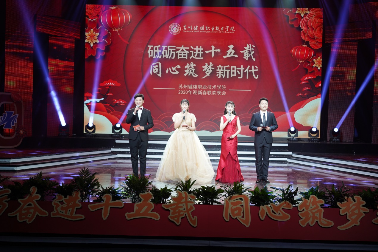 12月27日晚,以“砥砺奋进十五载,同心筑梦新时代”为主题的2020年迎新晚会在太仓电视台综艺演播大厅精彩演出。盛建军、张学军、周晓刚、史菊林、马桂明等校领导与全体教职工、老教师代表,校企合作代表和部分校友共迎新年。