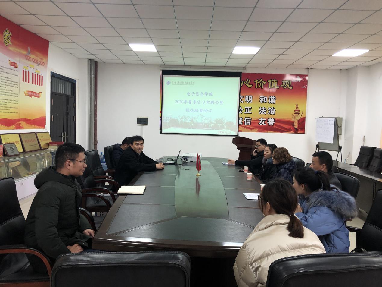 1月2日下午,电子信息学院组织召开了2020年春季实习双选会,华盈电子有限公司、众华电子有限公司、卓能电子有限公司、红壹佰照明有限公司等八家企业,电子1861、电子1862以及电子1822的学生参与了此次实习双选会。