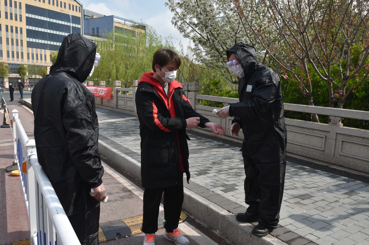 3月31日9:30,在北校门新冠肺炎疫情检测点,一名进校的学生被测量到体温37.5度,随即医务人员详细询问了他的病情,并按流程将他送到本市定点发热门诊医治;与此同时,在宿舍的另一名同学,咳嗽不止,感觉身体不适、发热,他将情况报告了辅导员……这一幕是正在进行的新冠肺炎疫情处置模拟演练。