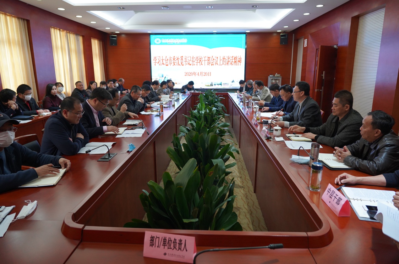 4月20日下午,学校组织全体中层以上干部学习交流沈觅书记在学校干部会议上的讲话精神,学校党委副书记、校长苏霄飞主持会议,校领导张学军、周晓刚、盛建军出席会议。