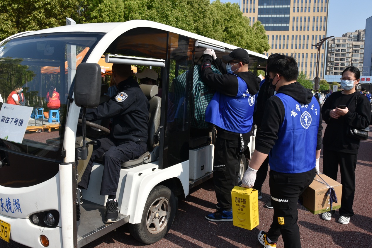 报到现场,交警、保安在校门口维持秩序,9名教师党员志愿者与160多名学生志愿者一起,为返校同学做好服务工作。同学们在校门口通过体温测量和苏城码查验后,有序进入校园,完成返校报到手续后,乘坐电瓶车回到宿舍。学校还安排10多名教师党员分赴昆山高铁站、昆山火车站和太仓汽车站,做好接站工作。