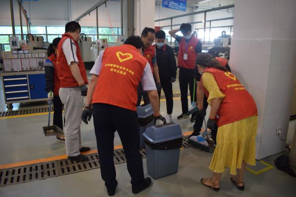 党总支副书记王志明介绍了本次主题活动的具体安排,并组织参与活动的党员和发展对象在中德培训中心大厅观看电教片《垃圾分一分▪娄城美十分》微动漫,学习垃圾分类相关知识,进一步明确垃圾分类的重要意义。随后,大家分别对中德培训中心天台、天井、实训场室、走廊和自行车车棚等区域进行了清扫和整理,对清理后的垃圾及时进行了分类处理。