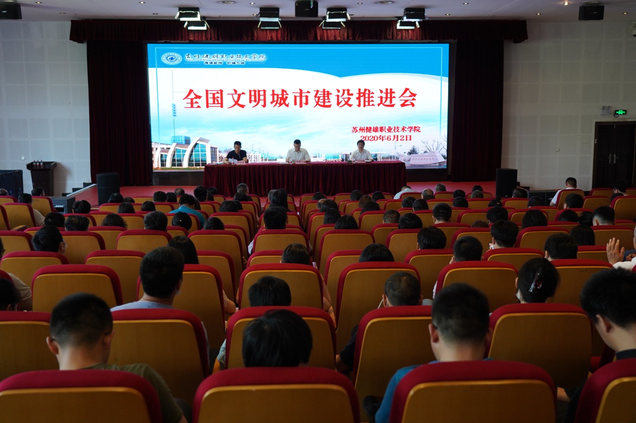 6月2日下午,我校召开全国文明城市建设推进会。中共太仓市委宣传部常务副部长、文明办主任王永伟,我校党委副书记、校长苏霄飞,副校长张学军,以及全体教职工出席会议。