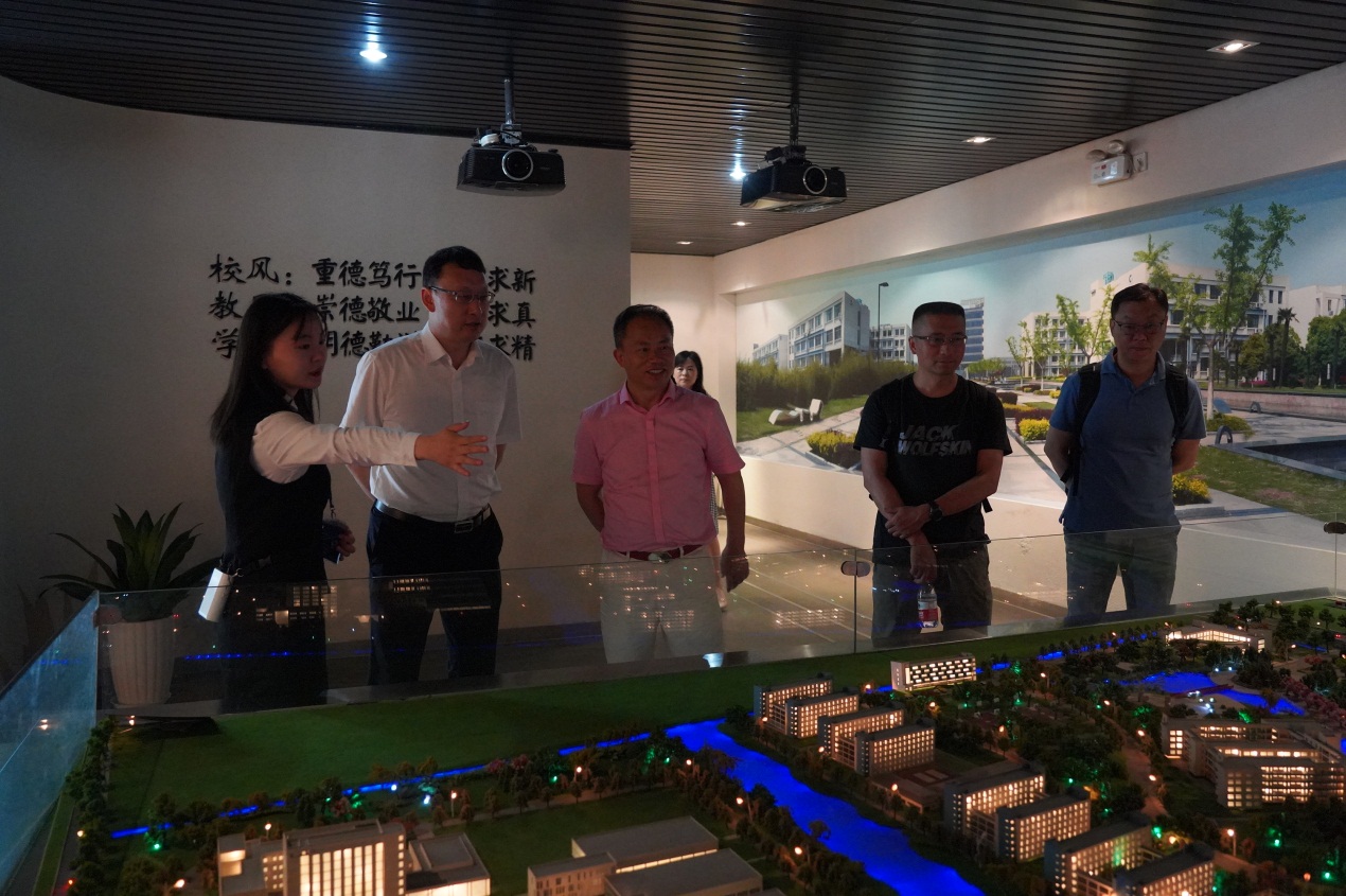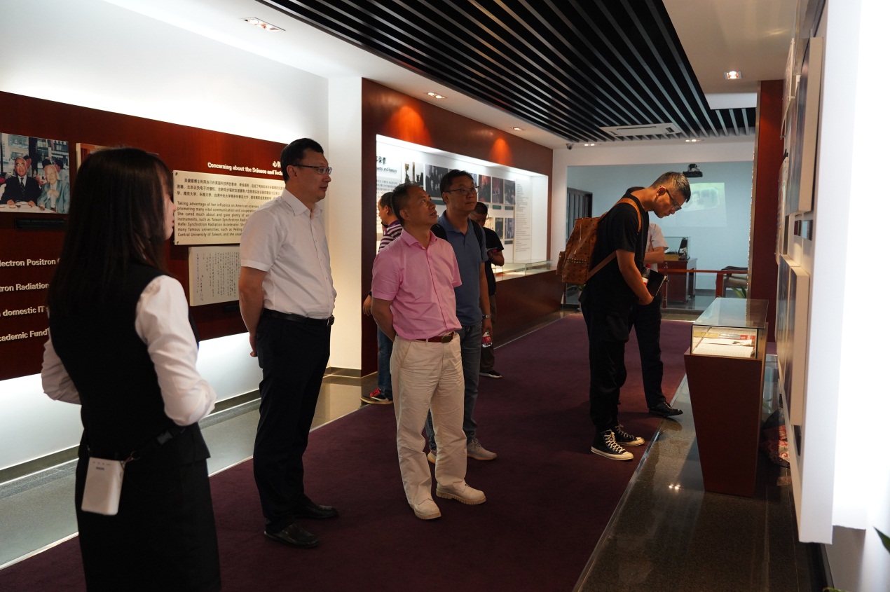 杨金华一行在苏霄飞的陪同下参观了吴健雄陈列馆、太仓校史馆,感受吴健雄这位世界著名物理学家对世界物理学作出的杰出贡献,了解太仓百年教育史。