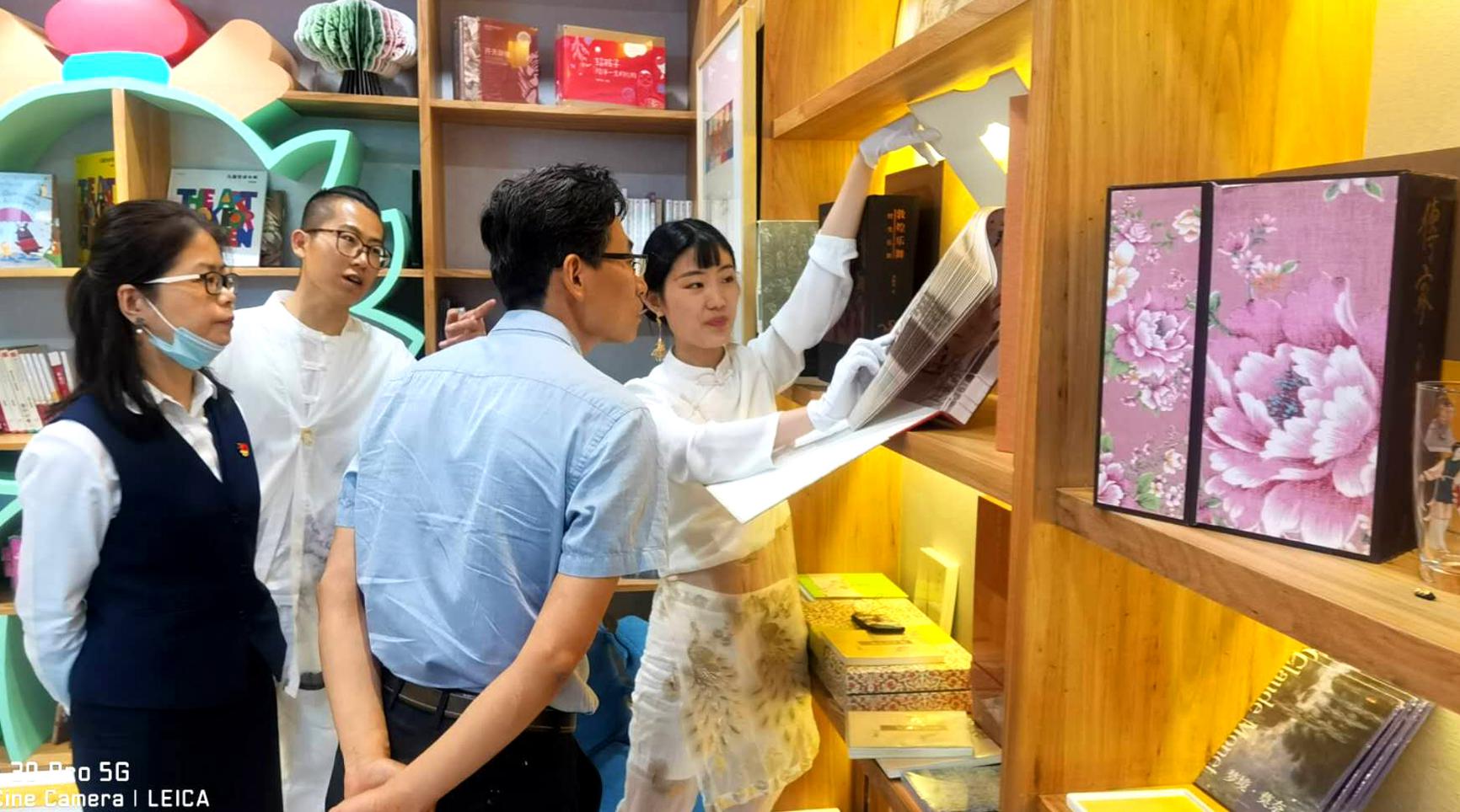展览期间,为了进一步加快推进太仓市大学生文创孵化基地建设,艺术学院副院长吴迪与太仓市文体广电和旅游局王新宇科长、文教体发展有限公司总经理李琳一行与上海“我嘉文创馆”开展文创产品设计交流互访活动。“我嘉文创馆”是上海市嘉定区委宣传部重点打造的一个项目,是嘉定首家集文创IP授权、IP衍生品孵化、文创产品研发、展示、零售、交易,以及非遗互动体验、文化艺术讲座、艺术阅读等于一体的综合性文创馆。功能定位在文创+旅游、文创+科技等范围。通过此次文创作品展示互访交流活动,对太仓市大学生文创基地今后在文创产品的市场化转化、文创产品的销售、展出的形式、文创基地的运营模式等方面拓宽了思路,同时也对我校进一步加强太仓市大学生文创孵化基地的运营和建设工作起到了很好的促进作用。(图/文 姜鸿超 朱华明 高鹏 审核/吴迪)