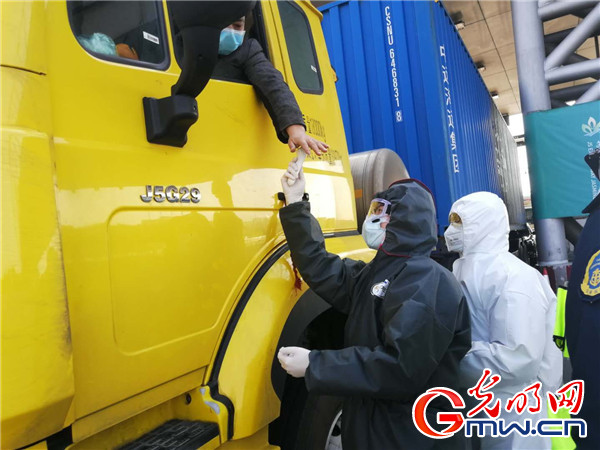 2月20日,李俊廷与同事在检查站工作。刘羽 摄