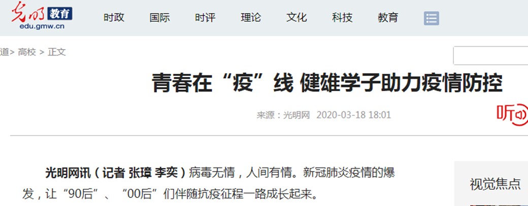 光明网讯(记者 张璋 李奕)病毒无情,人间有情。新冠肺炎疫情的爆发,让“90后”、“00后”们伴随抗疫征程一路成长起来。