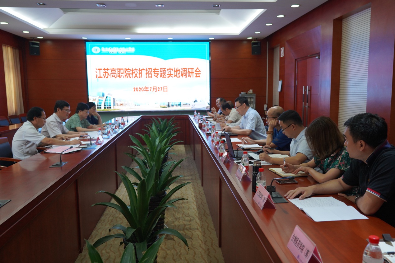 7月27日,省教育厅委托江苏信息职业技术学院原党委书记张旭翔一行4人来我校调研社会招生和产业教授选聘和管理工作。校党委副书记、校长苏霄飞,副校长周晓刚以及相关部门负责人陪同调研。