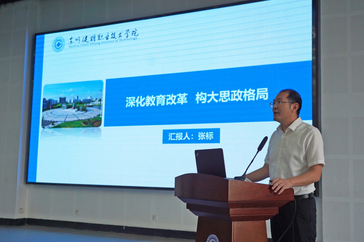 学生处处长张标主持了这一主题的研讨,并作了《深化教育改革,构大思政格局》的交流发言,他对“十大”育人体系作了全面阐述,就如何发挥思政课程育人主阵地作用,他说,通过省思政课教育改革创新示范点建设,打造“健雄范本”;打造思政“金课”,确立“全国高校思想政治理论课教学展示”新目标;落实马克思主义学院建设标准,建好建强马克思主义学院,领导干部上讲台,开展思想政治教育。