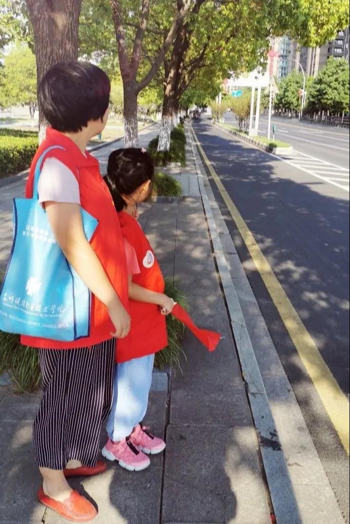 在海运堤路太平南路至人民南路之间的路长单位路段,党员勇当志愿者,他们放弃休息时间坚守岗位,反复寻查值勤路段,损毁的道板修好了没有、烟头是否有漏网之鱼、商家有没有把垃圾堆放在门外、骑电瓶车的人有没有戴头盔……一次次,一遍遍地寻查、劝导、上报,生怕我们的城市有一点点瑕疵。费晓丹老师动员她幼小的女儿也加入了志愿者队伍,她说:“我要让女儿从小知道,文明城市是靠你我他一起干出来的,需要大家一起呵护”。(图/葛晓娇 文/何寿林)
