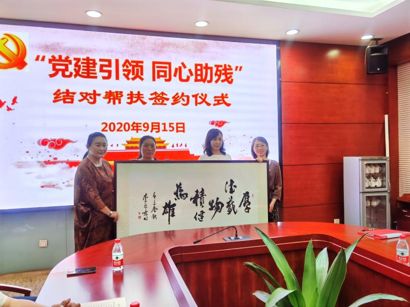 此次会议旨在积极发挥地方高校资源优势,加强双方深度合作,共同助力残疾人脱贫致富,进一步做好“深耕太仓、深化双元、深入创新、深得人心”四篇文章。会议期间,商学院党总支书记谢小莉和高梅女士详细介绍了各自单位情况,进行了友好沟通,并就合作内容达成了共识。作为发言代表,来自营销1921班的曹仁义同学表达了参与志愿服务的强烈愿望;残友代表何天豪也表达了深切的感恩之情和对同心助残活动的期待。会上还完成了“大学生实践教育基地”的授牌、书法作品捐赠,以及结对帮扶签约仪式。