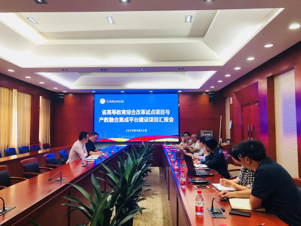 教务处处长许劲松汇报了江苏省高等教育综合改革试点项目《基于双元制教育产业园建设的产教融合人才培养模式改革》,并介绍了此项目是江苏省教育厅的培育项目,目标是建成太仓双元制培训平台集聚区、江苏省产教融合示范区、长三角工匠人才培养集散区、国内中德双元制教育样板区,并重点汇报了项目建设的完成情况和取得的成果。