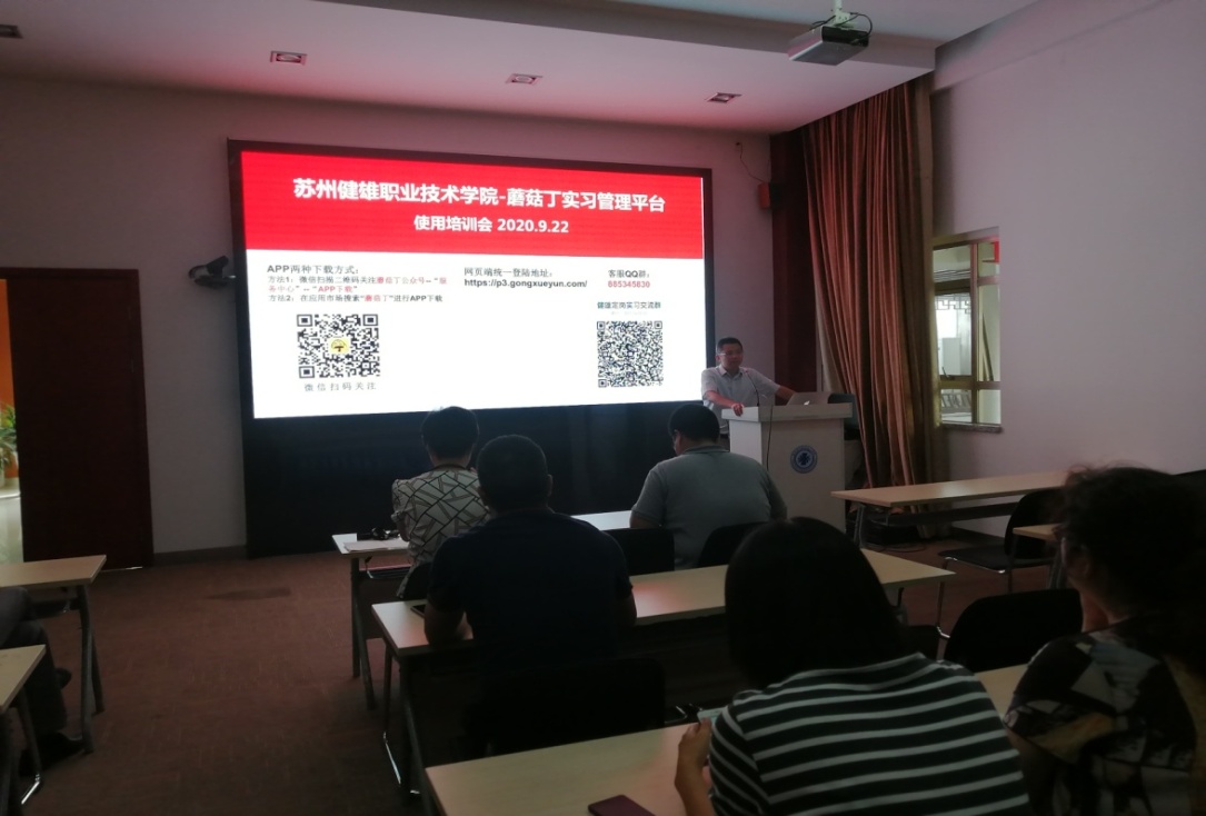 9月22日下午,教务处特邀工学云(蘑菇丁APP)创始人王奇先生来校,为二级学院分管院长、教学秘书、专业负责人、教学团队负责人进行工学云(蘑菇丁APP)实习服务平台培训活动。