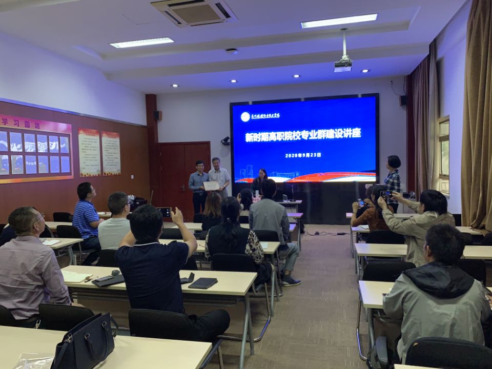 9月23日上午,上海市职业教育协会咨询专家委员会委员、高职高专教学工作委员会副主任,上海市高职高专教学研究会副会长,中国职业技术教育学会教学工作委员会常务理事、职业素养和创新创业教育研究中心学术委员会副主任潘家俊教授,应问鼎(中国)邀请在吴园第三会议室举办专业群建设讲座,各二级学院院长、专业带头人参加本次活动。讲座活动由教务处处长许劲松主持。