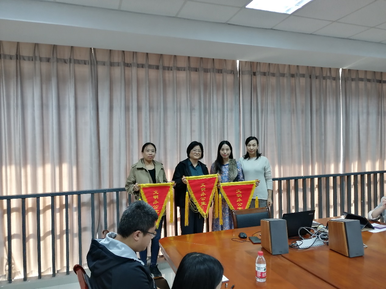 会上,谢小莉对近期的重点工作进行了通报,她希望党员老师发挥先锋模范作用,在本轮社会招生中为学院招生尽一份力;同时,她也为在近期美化办公室评比中获得“文明办公室”称号办公室颁发了锦旗。