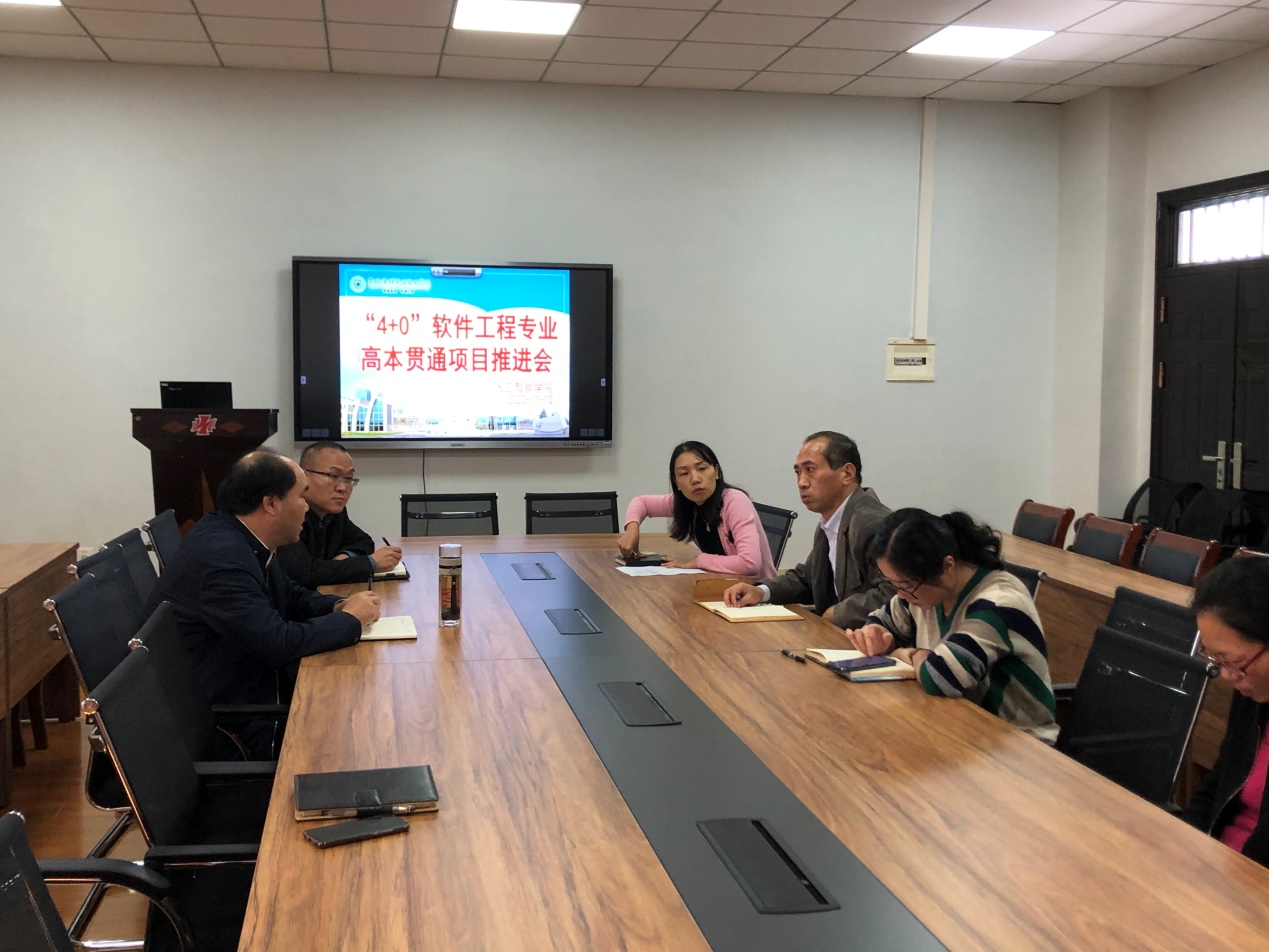 11月10日下午,人工智能学院(筹)召集二级学院领导、“4+0”软件工程班班主任、辅导员和部分任课老师,在D2-303会议室,召开了“4+0”软件工程高本贯通项目推进会,会议由人工智能学院(筹)副院长周玲余主持。