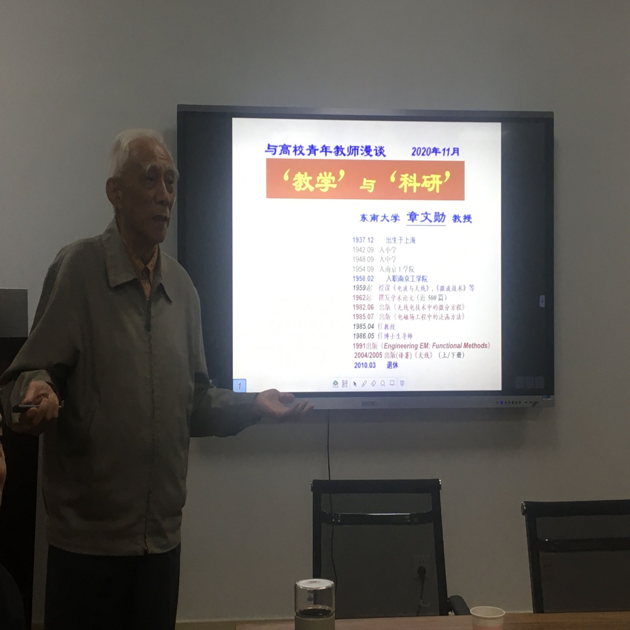 11月13日上午,应人工智能学院(筹)邀请,国际知名电磁学、微波、天线专家章文勋教授来问鼎(中国)讲学,在D2-303做了题为《与高校青年教师漫谈“教学”与“科研”》的专题讲座,讲座主要面向学院的青年教师。