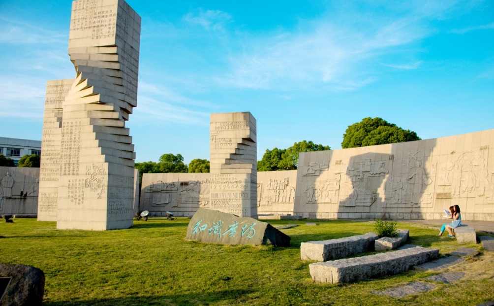 The Knowledge Square is located on the east bank of the Xinjing Lake. The main landscape consists of three granite pillars and a wall of relief sculptures, majestic and solemn. The east side of the relief wall is engr**ed with the school motto and the three values of the school, the teaching and the learning of our institute. The west side are historical and cultural relief sculptures of Taicang, displaying cultural elements of Loudong such as Zheng He's Seven Voyages to the West, southern Chinese silk and bamboo music, the Cowherd and We**ing Maid, scientific giant Dr. Chien-shiung Wu, etc. Standing tall, the three pillars include a pillar of Chinese characters, a pillar of numbers and a pillar of world languages. The spiral structure of the pillar takes the form of numerous books placed on top of one another to create stairs of knowledge leading up high into the sky of dreams, dynamic, spectacular and awe-inspiring. The pillar of Chinese characters writes a splendid chapter of the 5,000 years history of China. The pillar of numbers and the pillar of world languages reflect the evolution of human civilizations, bringing out the relationship between the rich cultural traditions of human beings and the cultural matrix. The Knowledge Square implies that the only way to a bright future is though the stairs of knowledge.