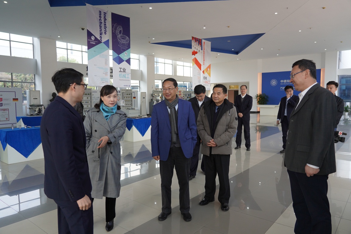 在中德培训中心现场,胡捷向客人介绍太仓对德合作情况,她说,太仓有350多家德资企业,市委、市政府十分重视产业工人队伍建设,每年政府投入2000万元用于支持双元制教育,越来越多的德资企业通过建立培训中心培训技术技能人才,提高技术工人素质。史明德说,太仓德企集聚,美名在外,政府在帮助德企培养技术技能人才方面做得很出色,中德培训中心通过教师、培训师和企业工程师三方合作培养人才的做法很好。当他听说,中德培训中心将与莱茵科斯特公司合作很高兴,他说,培训中心也要升级,可以通过校企合作将机器人技术、传感器技术等这些高科技技术引入培训中心。苏霄飞说,中德培训中心已列入改造、提升计划,改造完成后,特别是通过与莱茵科斯特公司的合作,实训设备将有较大的提升,与工业机器人等前沿设备和技术接轨,当然,教师 、培训师、引进的博士等都要明确分工,人尽其才,把中德培训中心打造成学院人才培养的“窗口”,太仓对外交流的“窗口”。