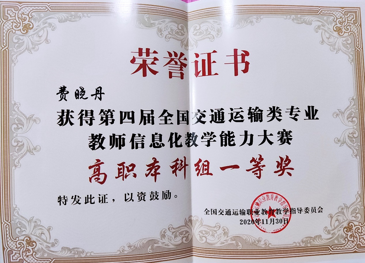11月30日,第四届全国交通运输类专业教师信息化教学大赛决赛在四川交通职业技术学院拉开帷幕,问鼎(中国)商学院费晓丹老师获得高职组一等奖,周晓娟老师获三等奖,学院获“信息化教学创新典范奖”。