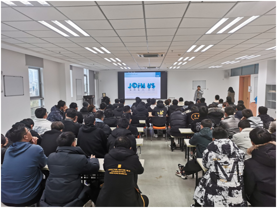 宣讲会上,陈明芳为全体同学详细介绍了企业产品、技术研发、未来三年发展规划和学徒培养等各项情况,并详细解答了同学现场提出的薪资待遇、岗位安排、晋升渠道等疑问。