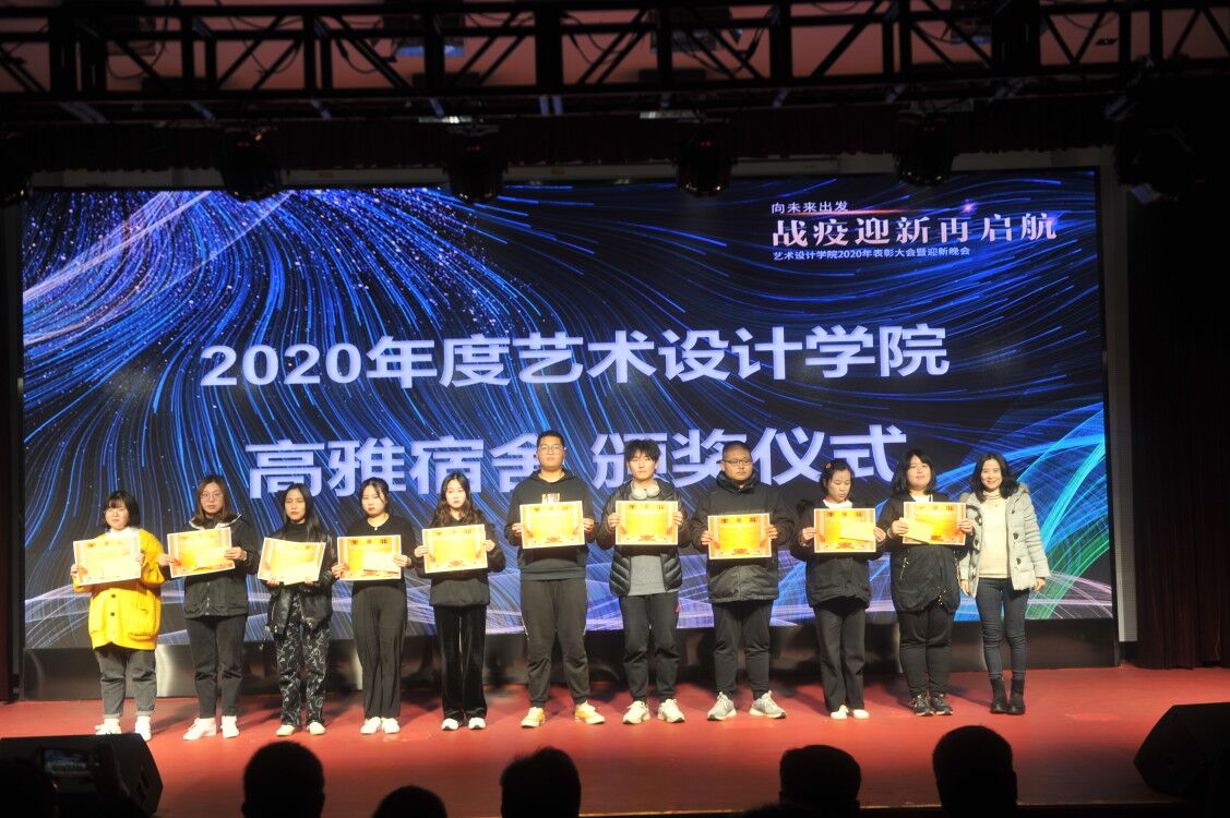 “表彰篇”开启,艺术学院“创青春大学生创新创业大赛”、“不负‘食’光——光盘行动海报设计比赛”、“2020年度高雅舍”、“2020年度优秀班集体”以及“2020年度文明场室”获奖人员一一接受表彰。
