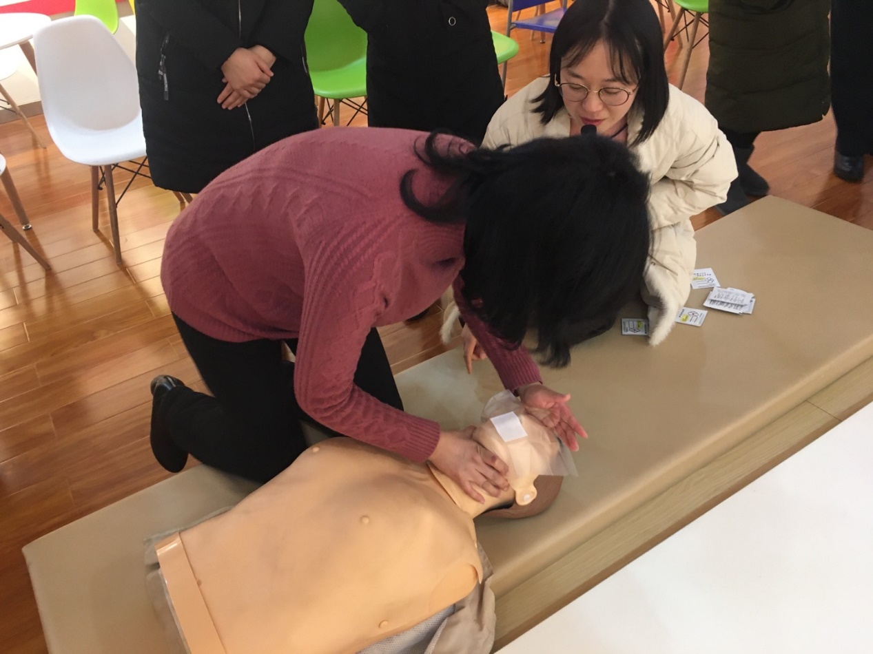 培训分为理论教学和实践操作两个部分。李慧老师以生动的实例讲授了日常生活中可能遇到的各种原因导致的心跳骤停、气道梗阻等事件的应急救护方法,现场演示了心肺复苏术、海姆立克、烧烫伤处理等紧急救护技术。