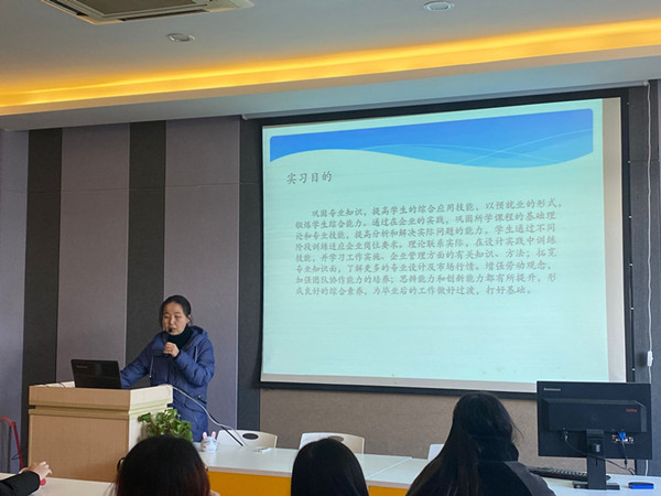 会议共包括两个阶段,第一阶段由广告专业负责人,王文藜老师就顶岗实习作了具体说明、指导和安排,她希望同学们要在实习过程中积极将学习到的专业理论知识运用于实践中,在实习中学有所获,不断提升专业技能和综合素质,以高质量的顶岗实习为就业奠定基础。