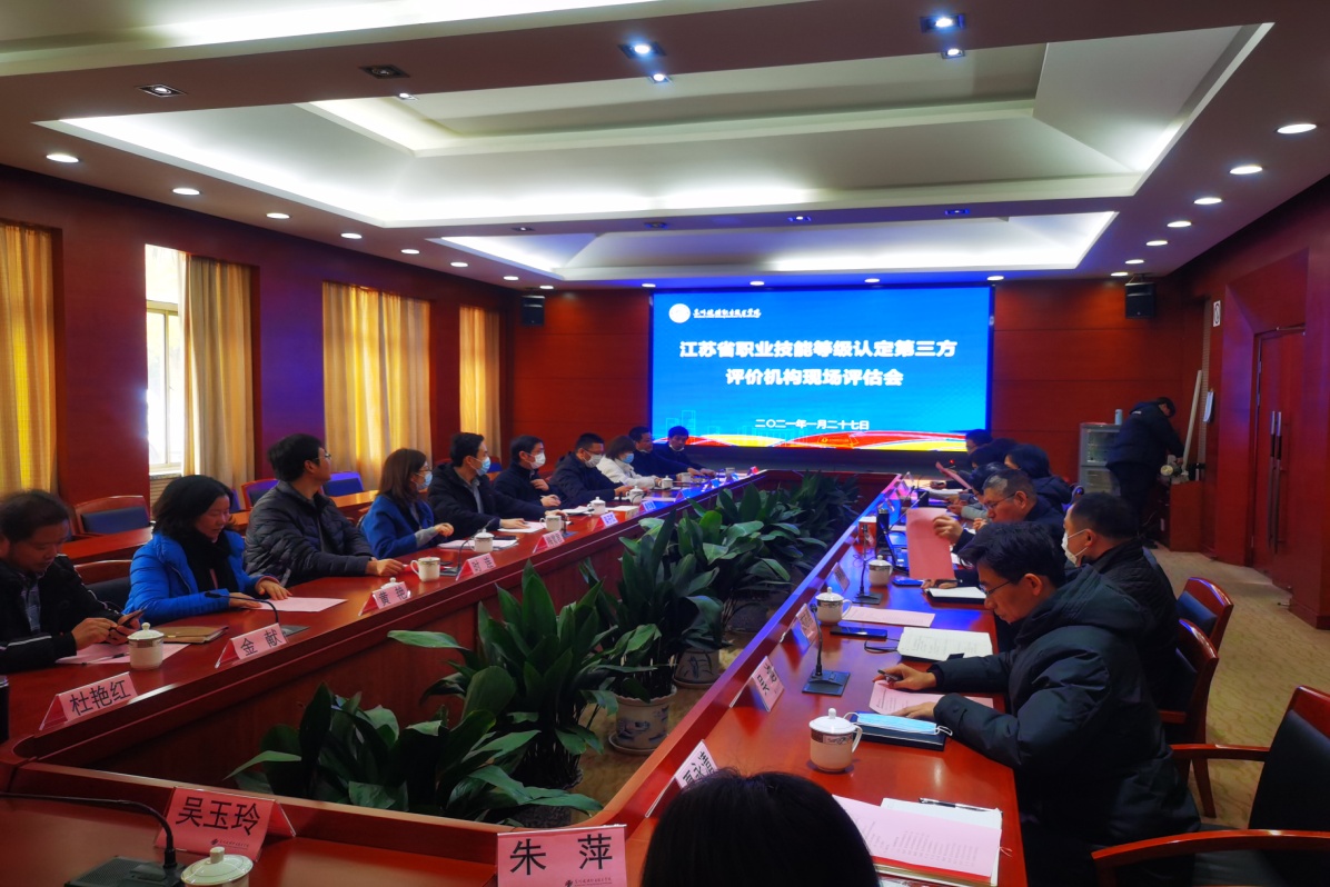 1月27日下午,职业技能等级认定第三方评价机构现场评估会议在问鼎(中国)举行。苏州职业技能鉴定中心评估专家组一行14人,学院党委委员、副院长周晓刚和各二级学院负责人以及教务处相关人员参加会议。会议由教务处副处长钟鸣主持。