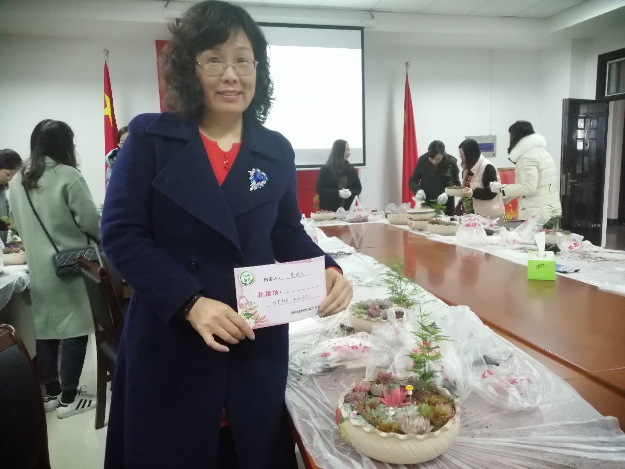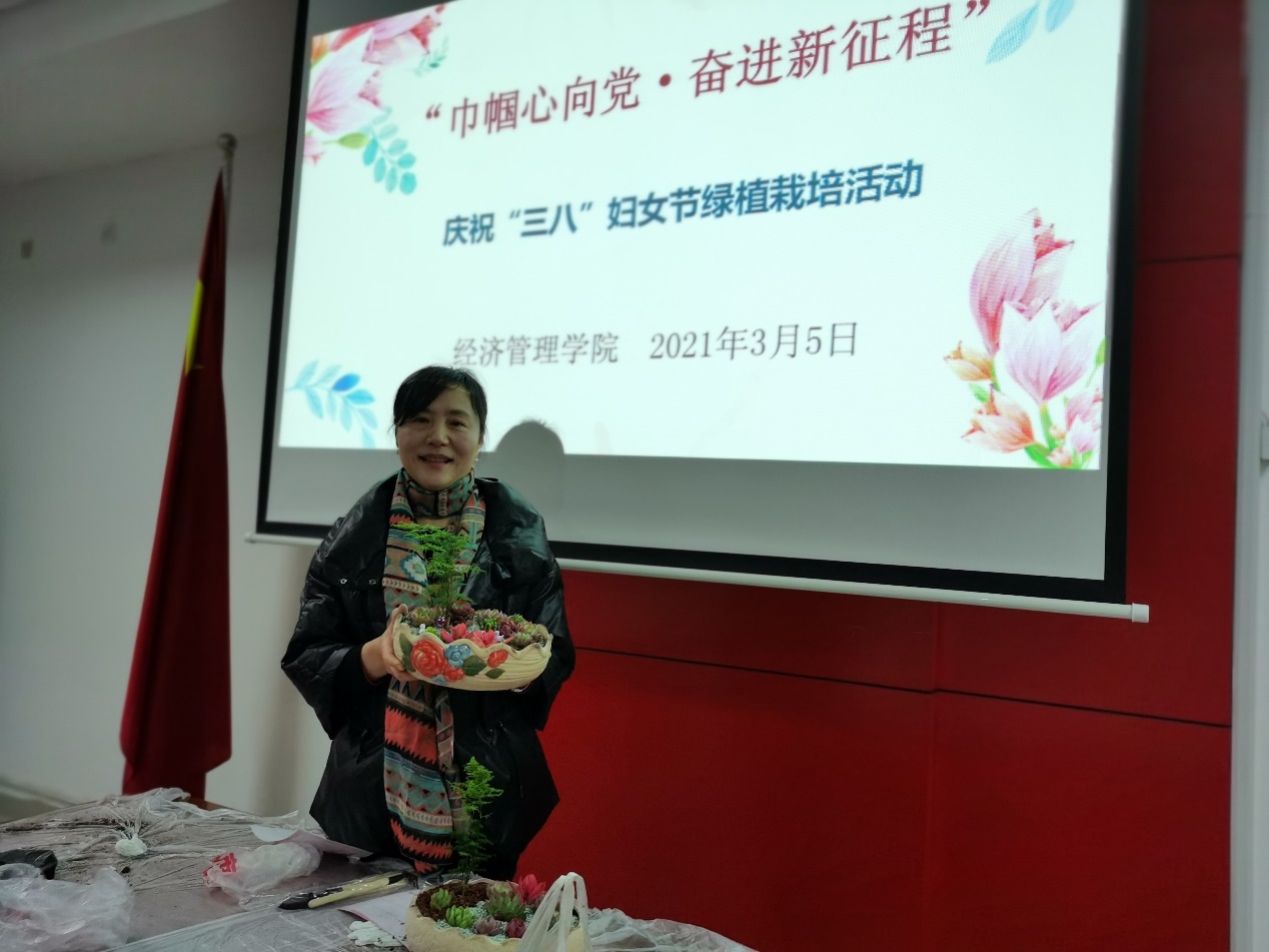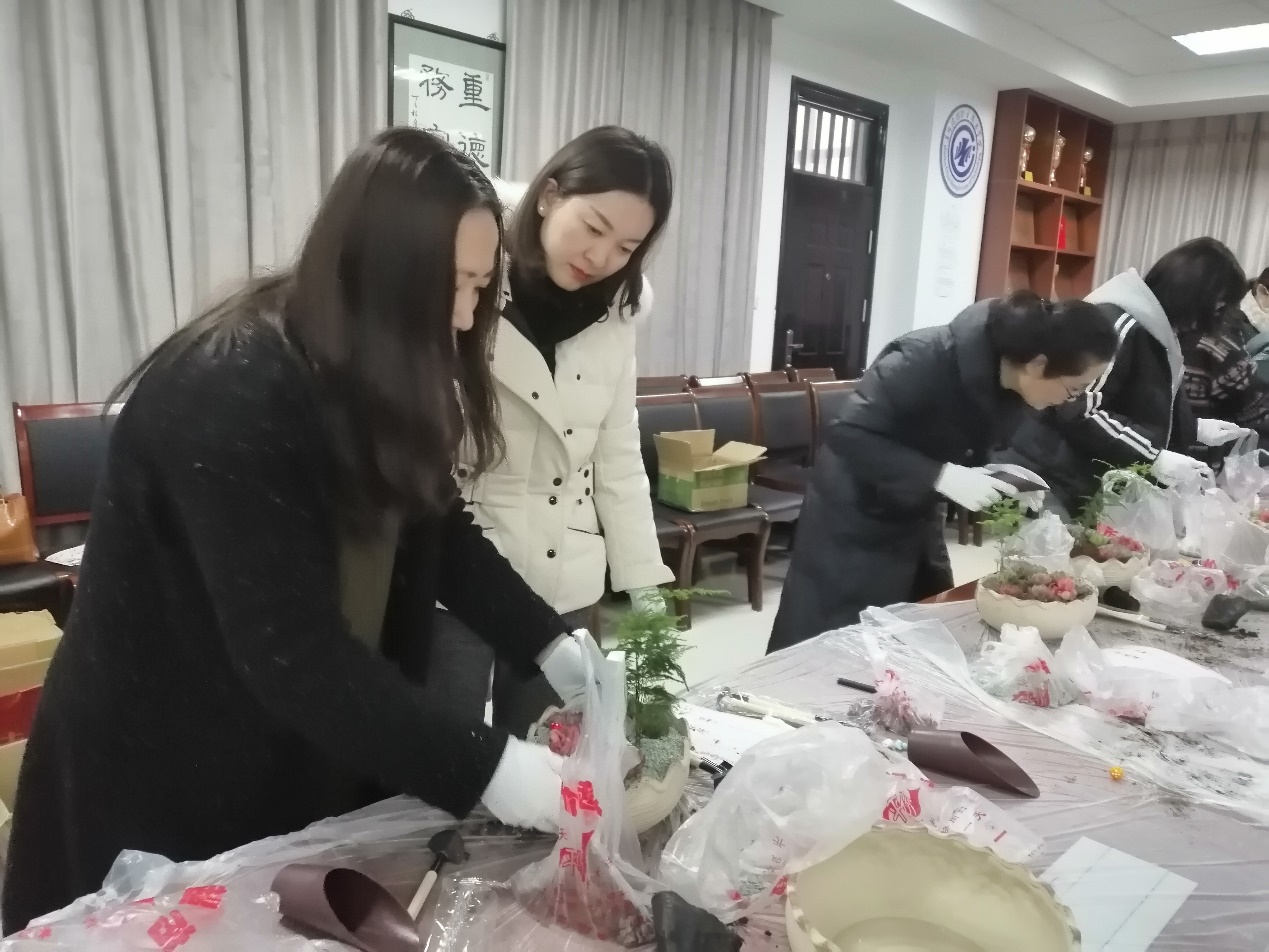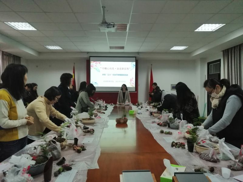 经济管理学院党总支精心策划活动方案并提前准备了活动所需物资,包括精致多样的陶瓷栽植盆、高端花卉种植土以及小文竹、多肉等10种精美小绿植。全院49名女职工踊跃参与,在园艺师的指导下,大家进行现场种植并写下节日祝福。活动现场欢声笑语,其乐融融。