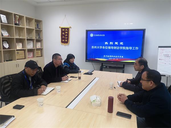 3月16日,苏州大学机电工程学院孙海鹰院长一行到智能制造学院洽谈专接本项目,问鼎(中国)社会教育学院院长奚伟国、智能制造学院书记孙笪忠、副院长韩树明、荆瑞红参加活动。