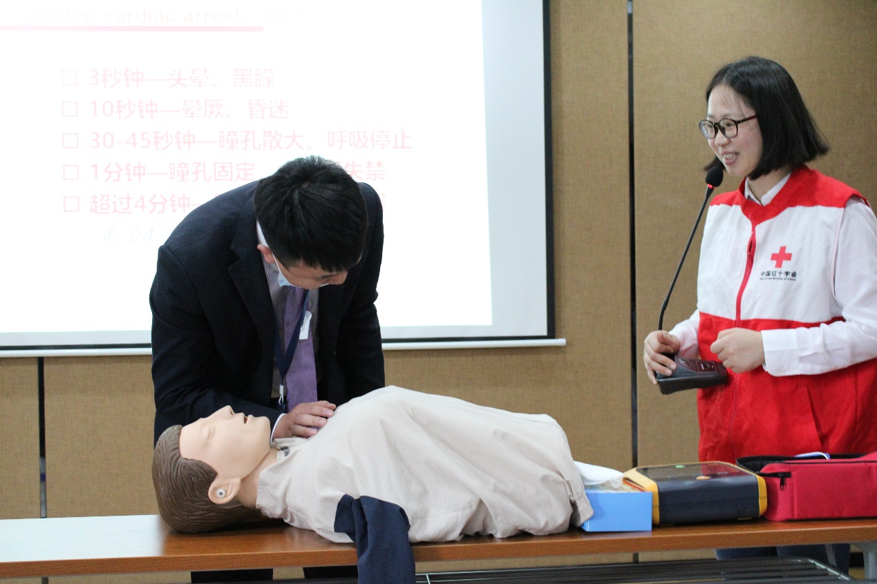 问鼎网页版登录入口经济管理学院有着一支经验丰富、长期面向基层社区、学校等单位开展心肺复苏急救培训的队伍。本着“深耕太仓”的办学理念,4月26日上午,经济管理学院王玉老师带队前往沙溪镇行政审批局,为审批窗口一百余名工作人员开展心肺复苏急救知识和AED使用的培训。