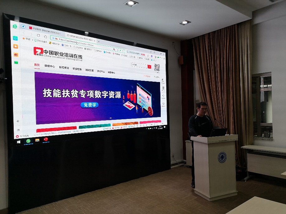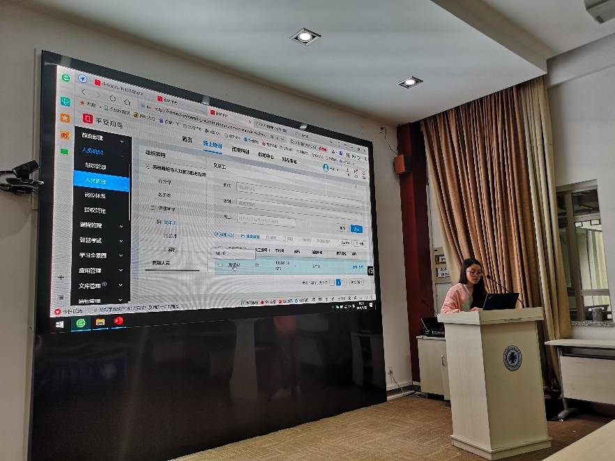顾晓吴老师代表合作教育处作了详细的政策解读,包括政策的来源、培训对象、培训流程、补贴标准、培训目标,并演示了人社局考核管理系统的操作流程。随后,中国职业培训在线的李金、平安知鸟的辛瑜,分别介绍了两个平台的资源、功能,并现场演示了登录、组班、考勤等操作流程。(图/文 顾晓吴 审核/王学戏)