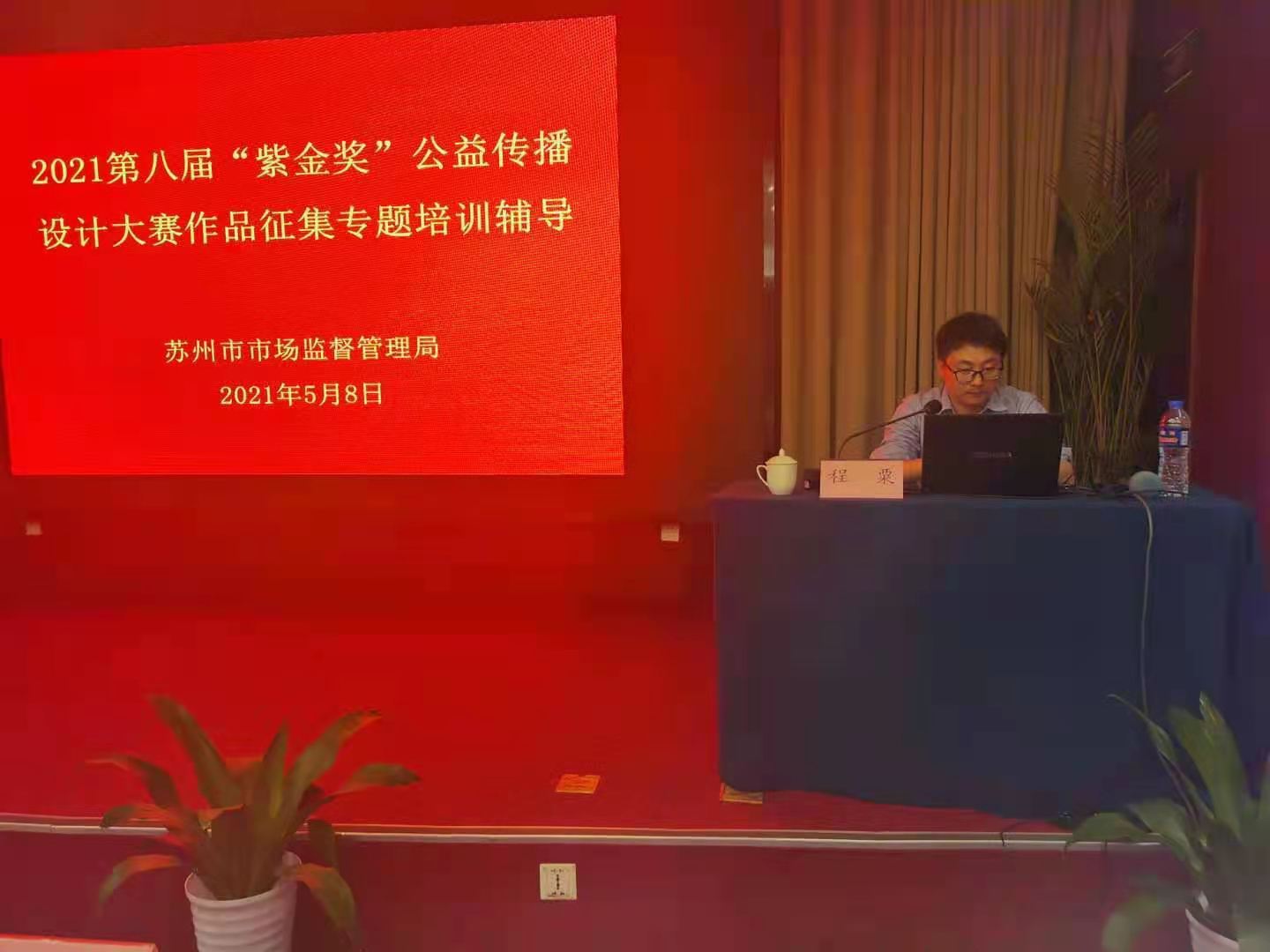 公益广告是传播社会主义核心价值观,倡导良好道德风尚的非赢利性广告载体,也是文化产业的一部分,制作、发布、传播公益广告更能体现一个城市的文明程度。为提高广告专业教师广告创作能力,5月8日,艺术设计学院广告专业教师团队参加了苏州市市场监督管理局举办的2021第八届“紫金奖”公益传播设计大赛作品征集培训辅导,市市场监督管理局广告处处长祁志浩主持本次培训。