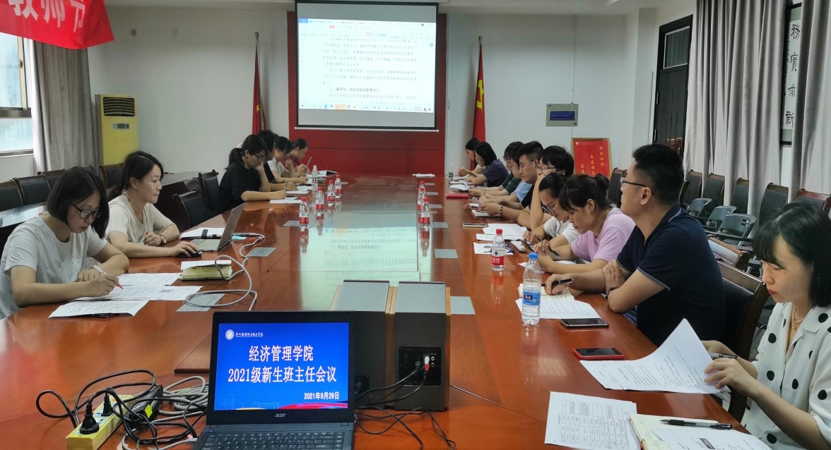 为确保开学启动各项工作有效传达和落实,贯彻落实新生辅导员和班主任队伍工作规范,加强常态化疫情防控下新生入学前教育管理服务,9月29日下午,经济管理学院组织全体21级新生辅导员班主任召开了新学期第一次工作会议。
