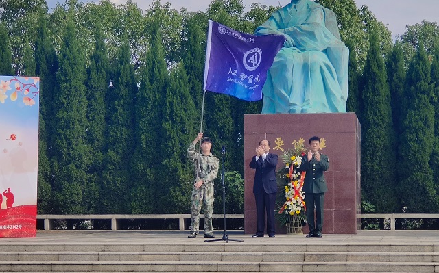 开学典礼在奏唱国歌中开始,随后由两位新生代表向吴健雄像敬献花篮,以此表达对吴健雄博士的敬意。