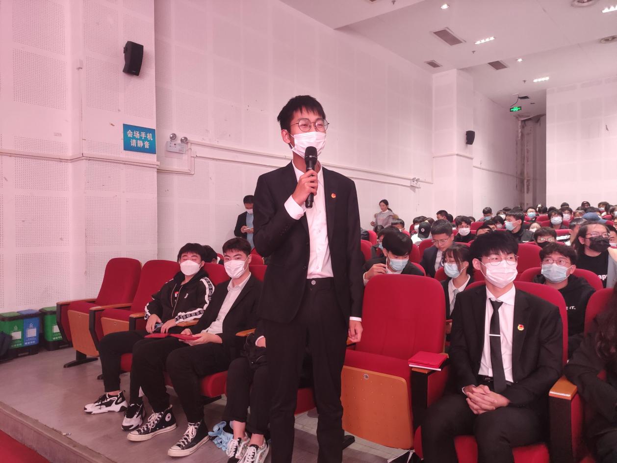 紧接着第二部分进行的是人工智能学院第二十二期业余党校开班仪式。由党总支副书记高飞老师为同学们带来《守初心 担使命 找差距 抓落实》专题党课。高飞副书记从总书记的初心和恒心说起,与同学们畅谈如何以家国情怀为己任守初心;在新时代浪潮以使命呼唤担当,以使命领未来,凝聚起同心共筑中国梦的磅礴力量;要有居安思危的思想,拥有知识不足、本领不足、能力不足的紧迫感,自觉加强学习,加强实践,永不自满,永不懈怠,积极寻找自我与他人差距,奋勇争先;作为优秀先进分子以及学生干部要树立正确的价值观,有历史担当,发扬钉钉子精神,脚踏实地落实干好每一件大事小事,同时也要戒骄戒躁,以时不我待、只争朝夕的精神走好新时代长征路。(图文/周懋怡、杨诗怡、杨磊 审核/高飞)