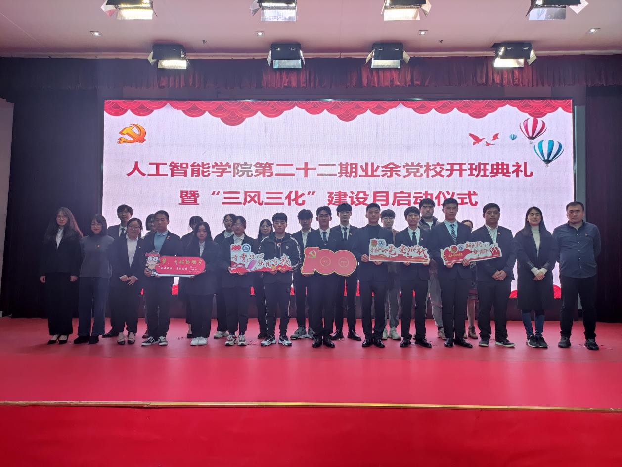 11月21日晚,人工智能学院在图书馆报告厅开展第二十二期业余党校开班仪式暨“三风三化”建设月专题活动。本次活动由中共预备党员辅导员助理杨磊主持,党总支副书记高飞、全体辅导员、入党申请人、受表彰同学以及20、21级主要学生干部参加,活动在庄严的国歌声中拉开帷幕。