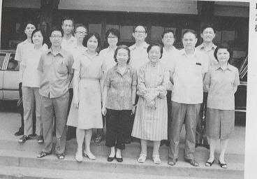 1982年,吴健雄访问复旦大学时与谢希德教授等人合影
