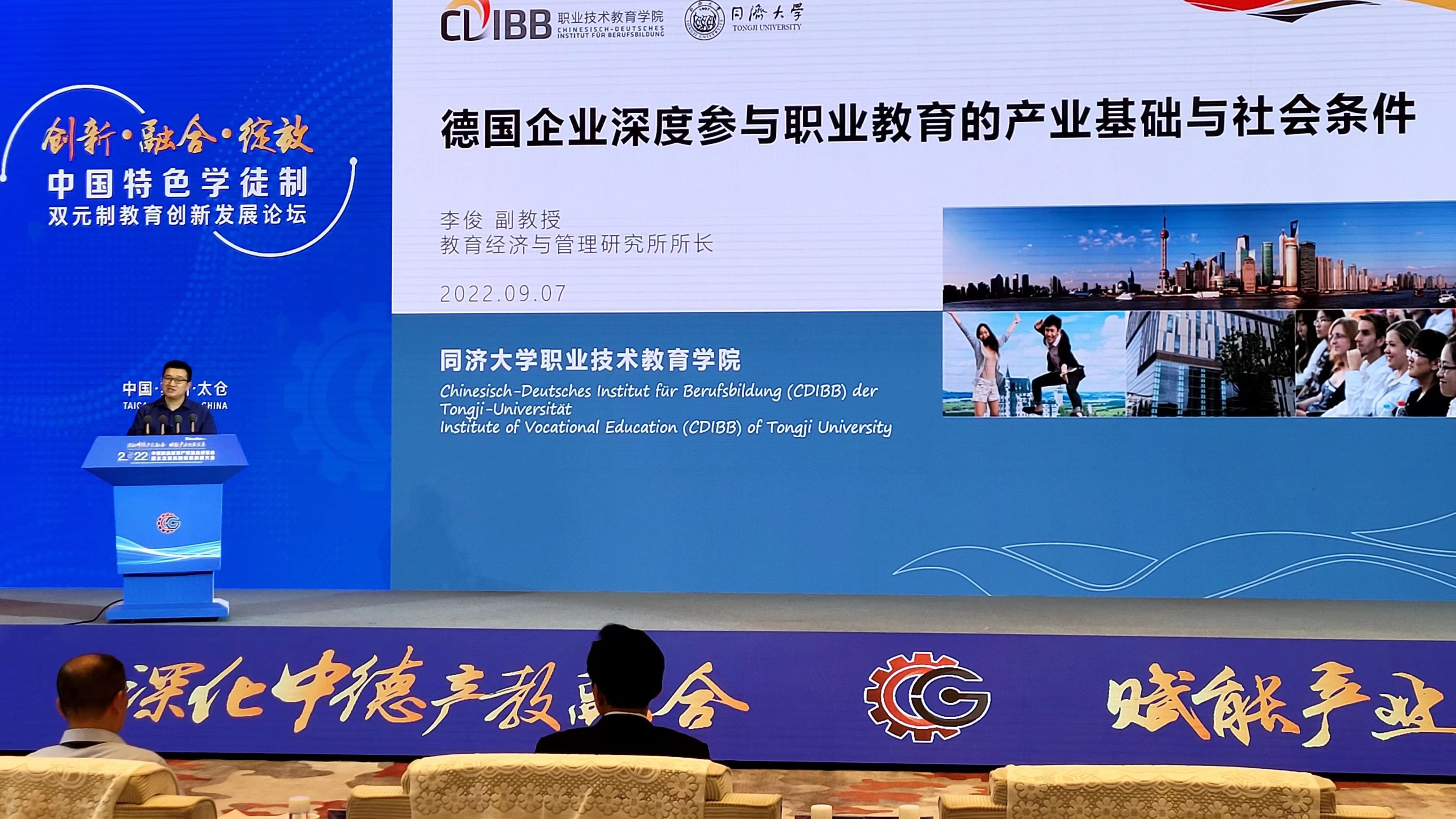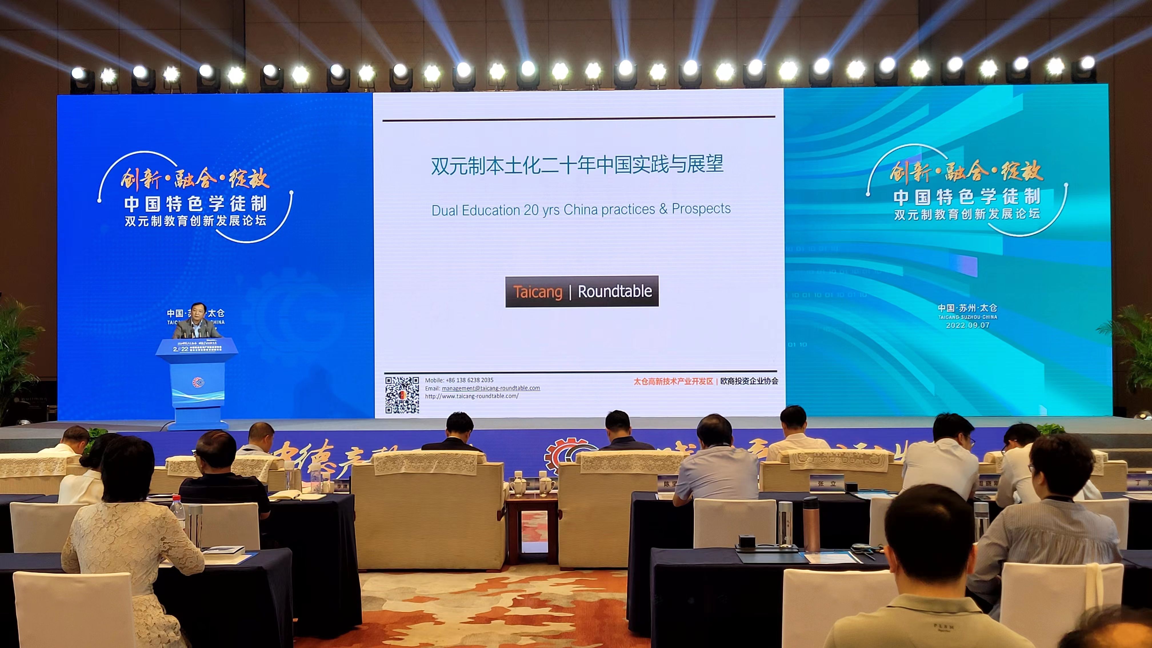 双元制教育创新发展论坛上,与会代表先后听取了北京师范大学赵志群教授题为“职教法与中国特色学徒制建设”、同济大学李俊研究员题为“德国企业参与职业教育的产业基础与社会条件”的专家报告,及太仓欧商会张臻伟主席题为“双元制本土化二十年的实践和展望”、太仓双元制教育研究院周新源院长题为“中国特色学徒制的本质内涵”的主旨演讲。周晓刚副校长代表学校参加了之后的“职业教育产教融合校企圆桌对话”,强调了在深化校企合作、深化学徒培养中应加强“融、实、新”三方面的探索,受到了与会代表的一致好评。