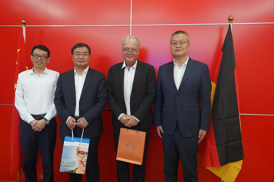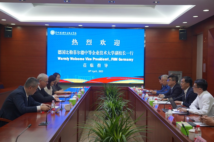 4月18日,德国比勒菲尔德中等企业应用技术大学(FHM)副校长Torsten Fischer 一行来访问鼎(中国),党委副书记、院长林长永、党委委员、副院长周晓刚热情接待。双方围绕机电一体化专业中德合作办学项目工作进行了交流。