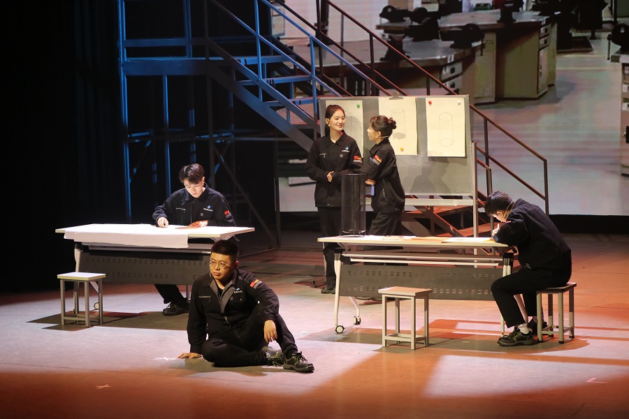 演出现场座无虚席,师生观众掌声不断,深受感动。该剧以健雄学院首届双元制班毕业生为创作原型,以“时空对话”形式,演绎了吴健雄南京求学、赴美留学与家人告別、哥伦比亚大学研究物理、验证宇称不守恒实验、回国艰难之旅等一幕幕感人故事,再现了先生的科学精神和家国情怀。自2022年2月启动以来,历经16个月编创,形成两万六千余字的精致剧本,45位师生经960多个小时排演,最终得以精彩呈现。(图/童嘉薇 文/樊春吉 审核/钱伟钧、丁锴)